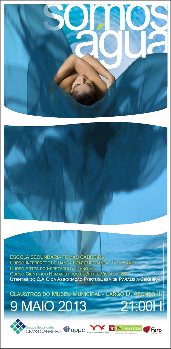 Somos Água apresenta um trabalho conjunto desenvolvido pelas turmas de Artes Visuais, Dança e Teatro da Escola Secundária de Tomás Cabreira, pelos utentes do C.A.O. da Associação Portuguesa de Paralisia Cerebral e pelo grupo coral ACANTO - T.C..