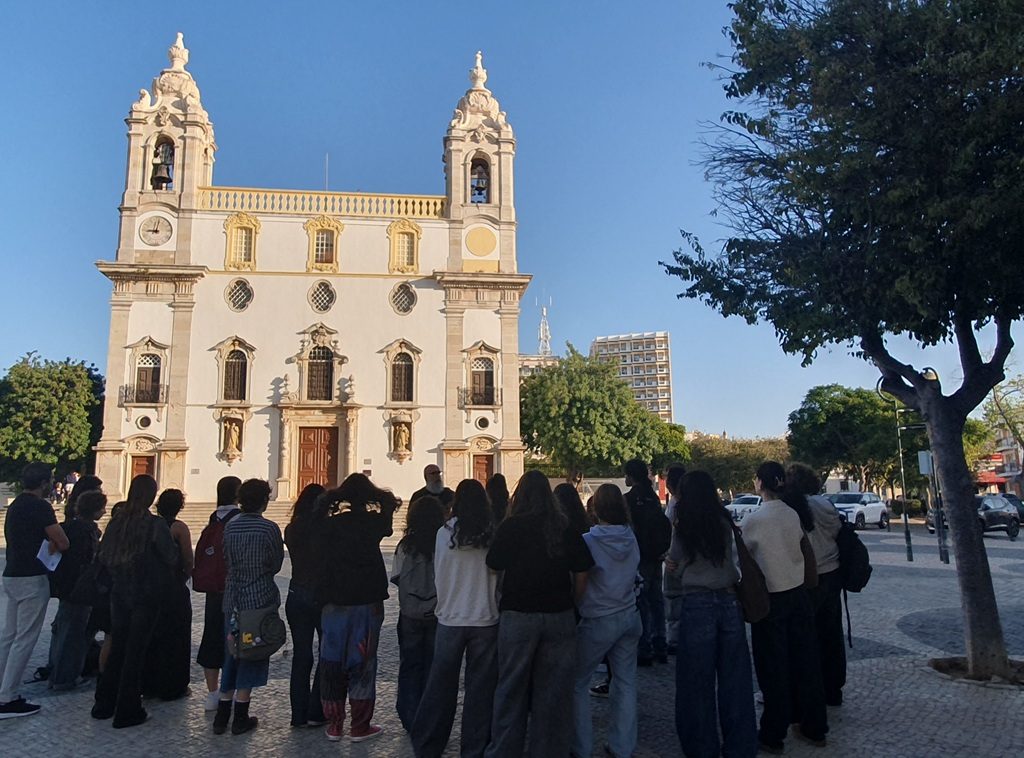 A visita constituiu, assim, uma oportunidade de articular teoria e prática, aproximando os estudantes das manifestações artísticas que marcam a identidade histórica e estética da cidade de Faro.