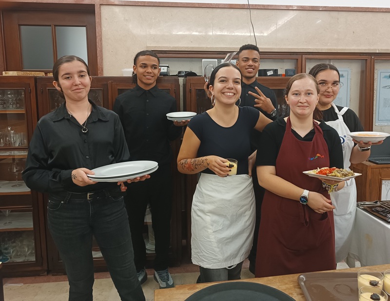 Os alunos dos cursos de Técnico/a de Restaurante/Bar e Alojamento Hoteleiro, acompanhados pelos professores da área tecnológica, prepararam, no passado dia 13 de novembro, um almoço destinado à comunidade educativa, inspirado nas aprendizagens e experiências adquiridas em Barcelona, no âmbito dos estágios realizados em empresas da cidade catalã, integrados no projeto Erasmus+.