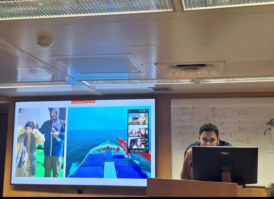 A turma 12B, no seguimento da sessão com o oceanógrafo Dr Caio, do CCMar, realizou no dia 25 nov um Livestream, com o navio científico, ao largo de Cabo Verde. A expedição partiu da Alemanha com destino à Namíbia.