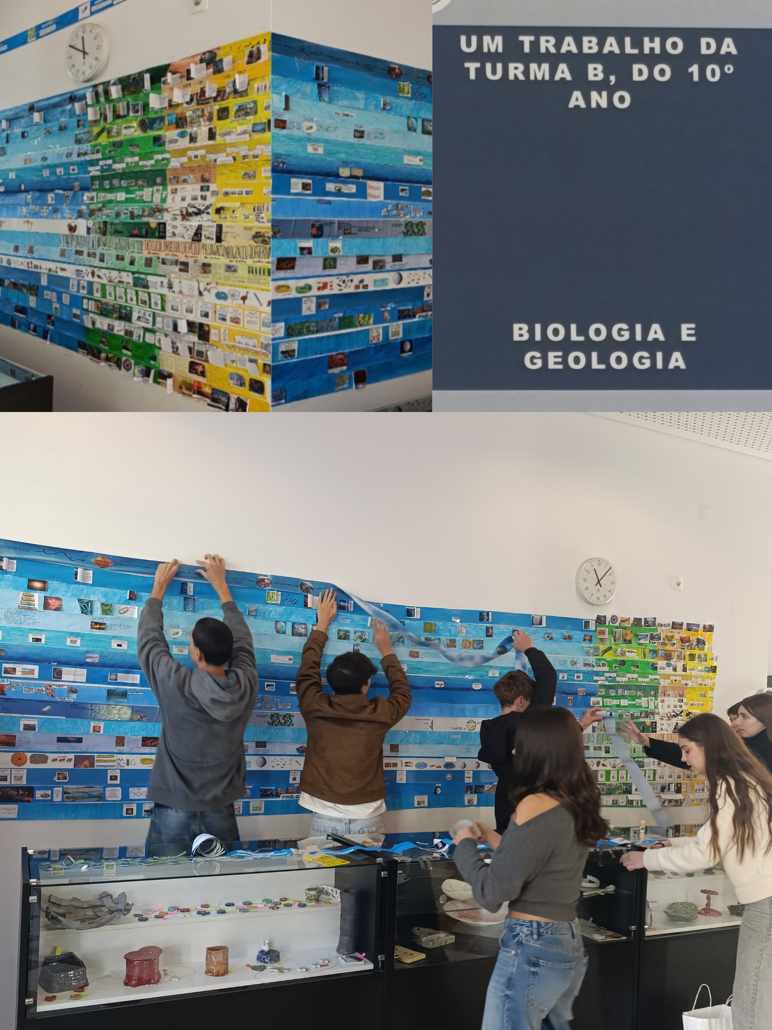 Os alunos do 10.º ano, turma B, elaboraram frisos cronológicos sobre a Origem e Evolução da Vida na Terra, no âmbito da disciplina de Biologia e Geologia.
