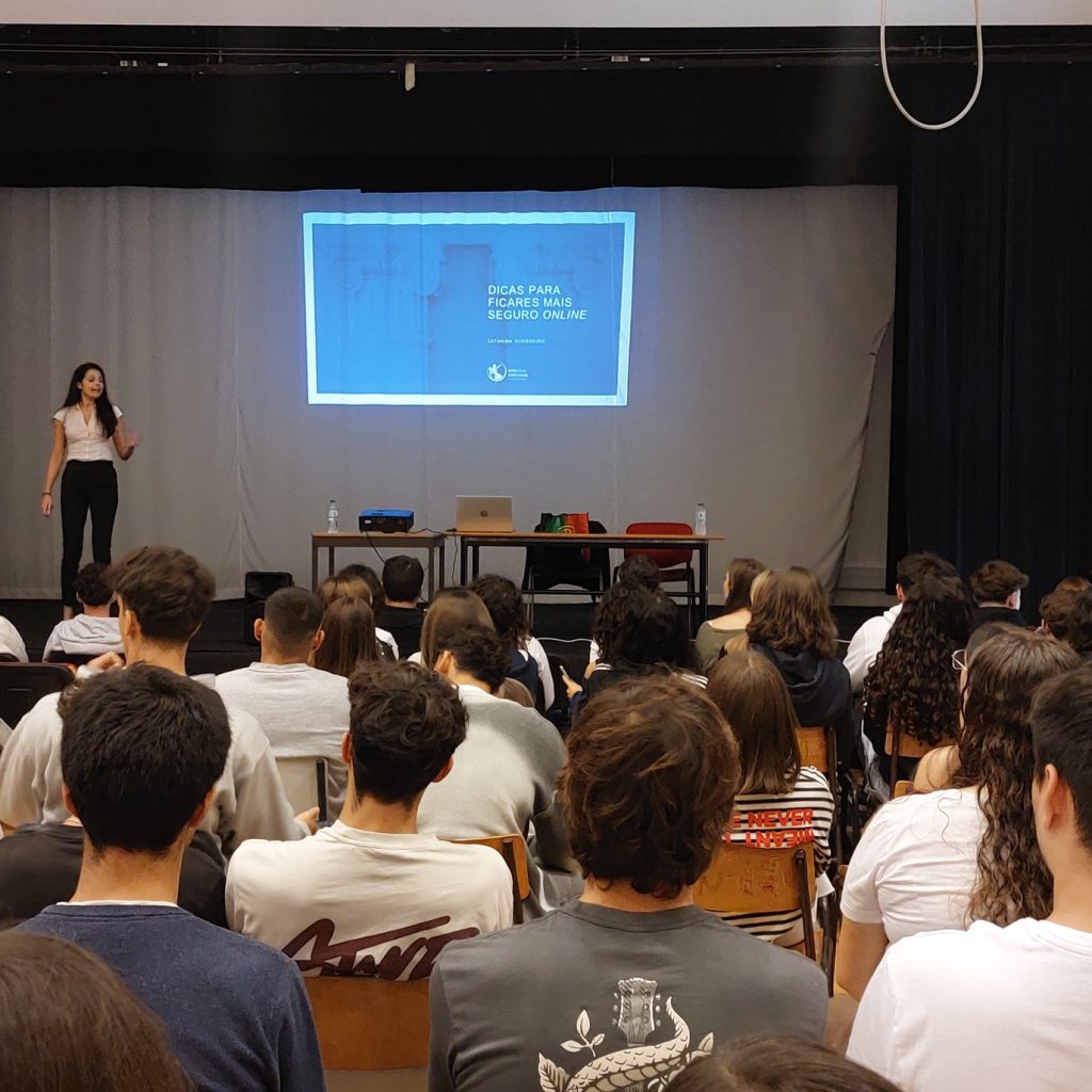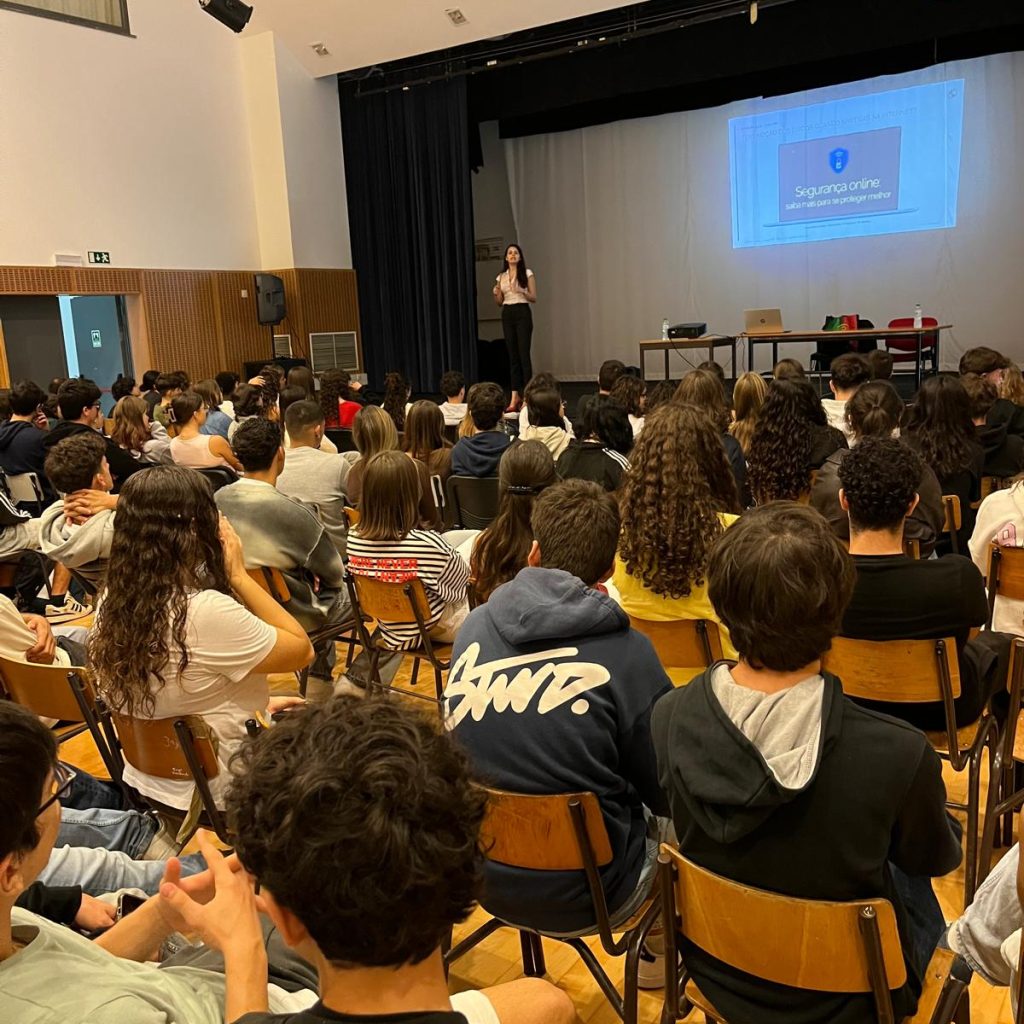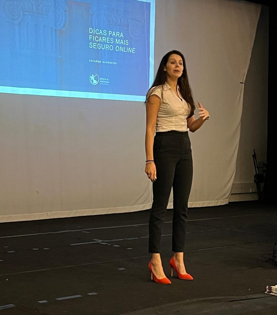 Os alunos das turmas 10º C, 11º B, C, E, J e 12º B, C e D assistiram, no dia 31 de outubro, de forma entusiasmada e interessada, no Auditório da Escola Secundária Tomás Cabreira, a uma sessão sobre a “Prevenção de Fraude e Canais Digitais”, dinamizada pela Drª Catarina Guerreiro, do Banco de Portugal.
