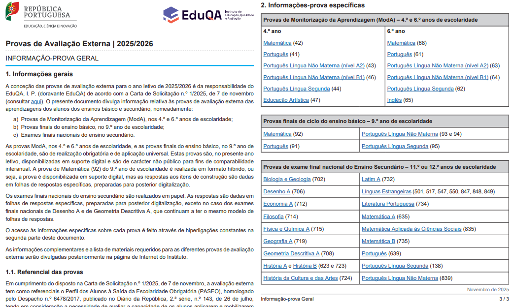 No site do IAVE é disponibilizado o ficheiro pdf “Informação-Prova Geral”, que também contém ligações para todas as Informações-Provas Específicas