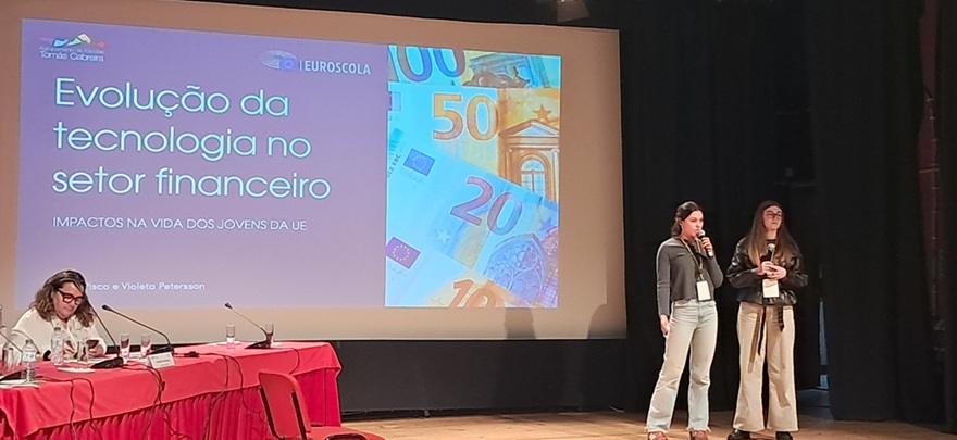 “O nosso Agrupamento participou ontem na fase de apresentação oral do trabalho que levou ao concurso “EUROESCOLA” e que se subordinou ao tema da literacia financeira e as novas tecnologias.